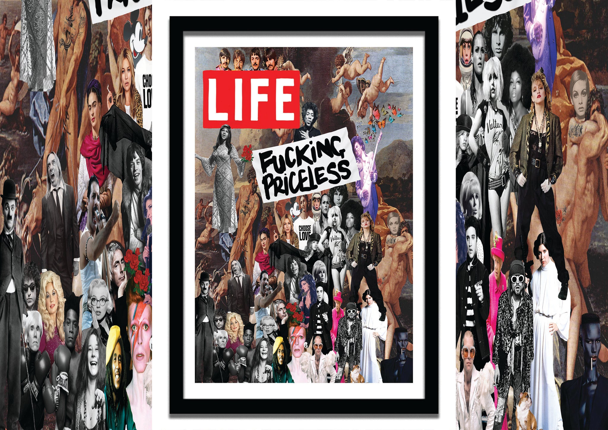 The F*CKING Priceless Life Magazine Art Print. Incredibly Striking Collage Artwork featuring our favourite icons from Music/Art/Fashion/Theatre/Movie.